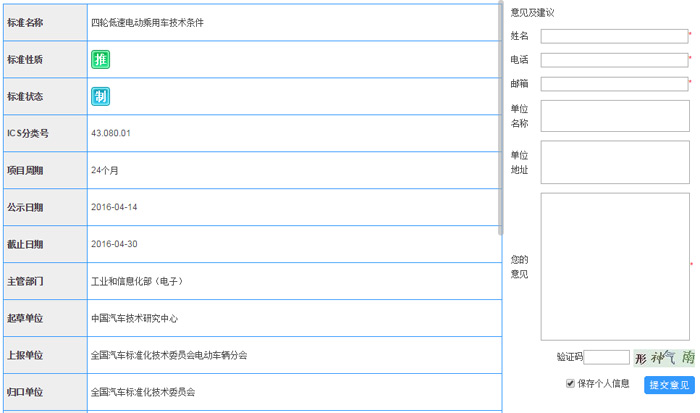 如有任何意见或建议,请登录国家标准委网站查询项目信息和反馈意见建议。征求意见截止时间为2016年4月30日。