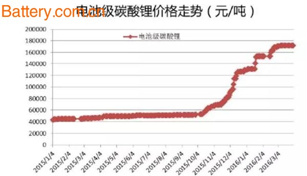 我国锂资源丰富,但分布相对集中,重点分布于青海、西藏、四川、江西等省市,国内锂精矿主要由天齐锂业、众和股份、赣锋锂业等少数企业提供。受锂资源nba直播吧极速体育jrs_jrs直播王_极速体育NBA直播高度集中、少数企业主导价格、碳酸锂需求增加等诸多因素影响,2015年电池级碳酸锂价格由年初的4.3万元/吨疯涨至年底的12.3万元/吨,上涨近3倍。2016年以来,电池级碳酸锂价格依旧延续了去年的上涨态势,6月第二周市场电池级碳酸锂成交主流在15.5-16.5万元/吨,部分高端成交价格在16.5-17万元/吨附近,18万元/吨少量成交。上游锂资源及碳酸锂等材料价格的非理性上涨,在一定程度上对锂电池产业的发展会产生一定的不利影响。