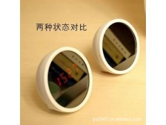 她看上去是一面精致的台式小镜子,不用闹钟的时候完全可以当镜子,太神奇了,可谁也想不到她的镜面还是一台多功能LED时钟,轻轻按下顶部的银条按钮,镜面上竟神奇地出现了时间显示,红色的LED数字会让所有人都眼前一亮,惊羡不已!